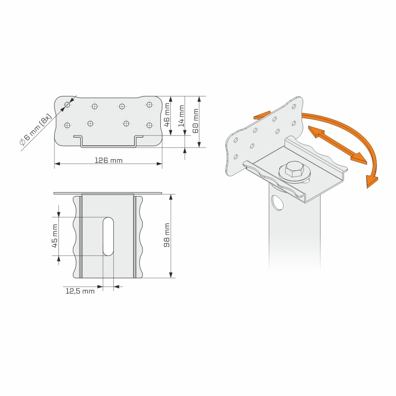 - 3.1: Platziere die Konsole auf dem Schraubfundament. Schraube sie mit der M12er-Schraube und Unterlegscheibe nur leicht fest, damit du sie im Langloch noch verschieben kannst.