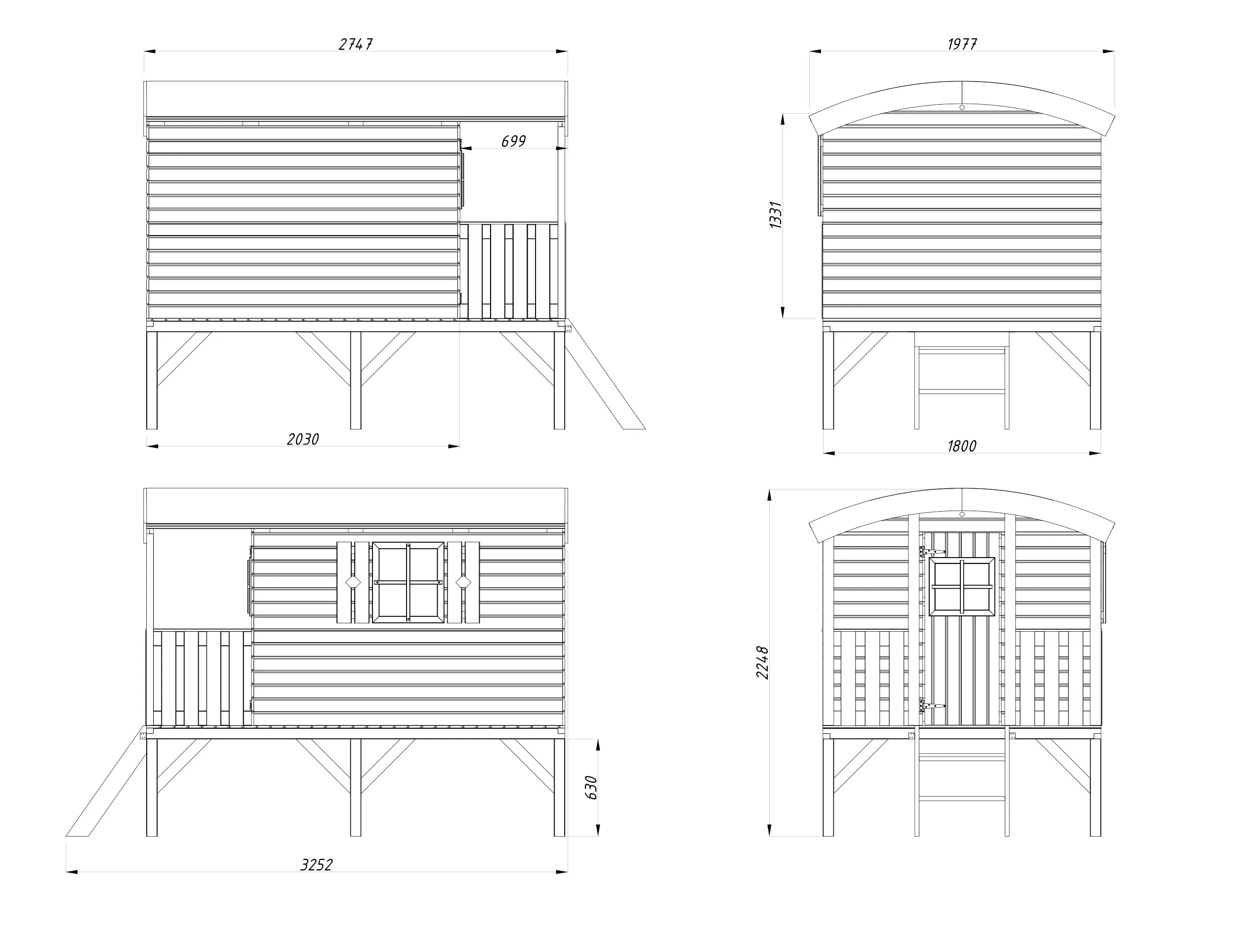 - Höhe Haus ohne Podest: ca. 153 cm (Seitenwandhöhe: ca. 124 cm)