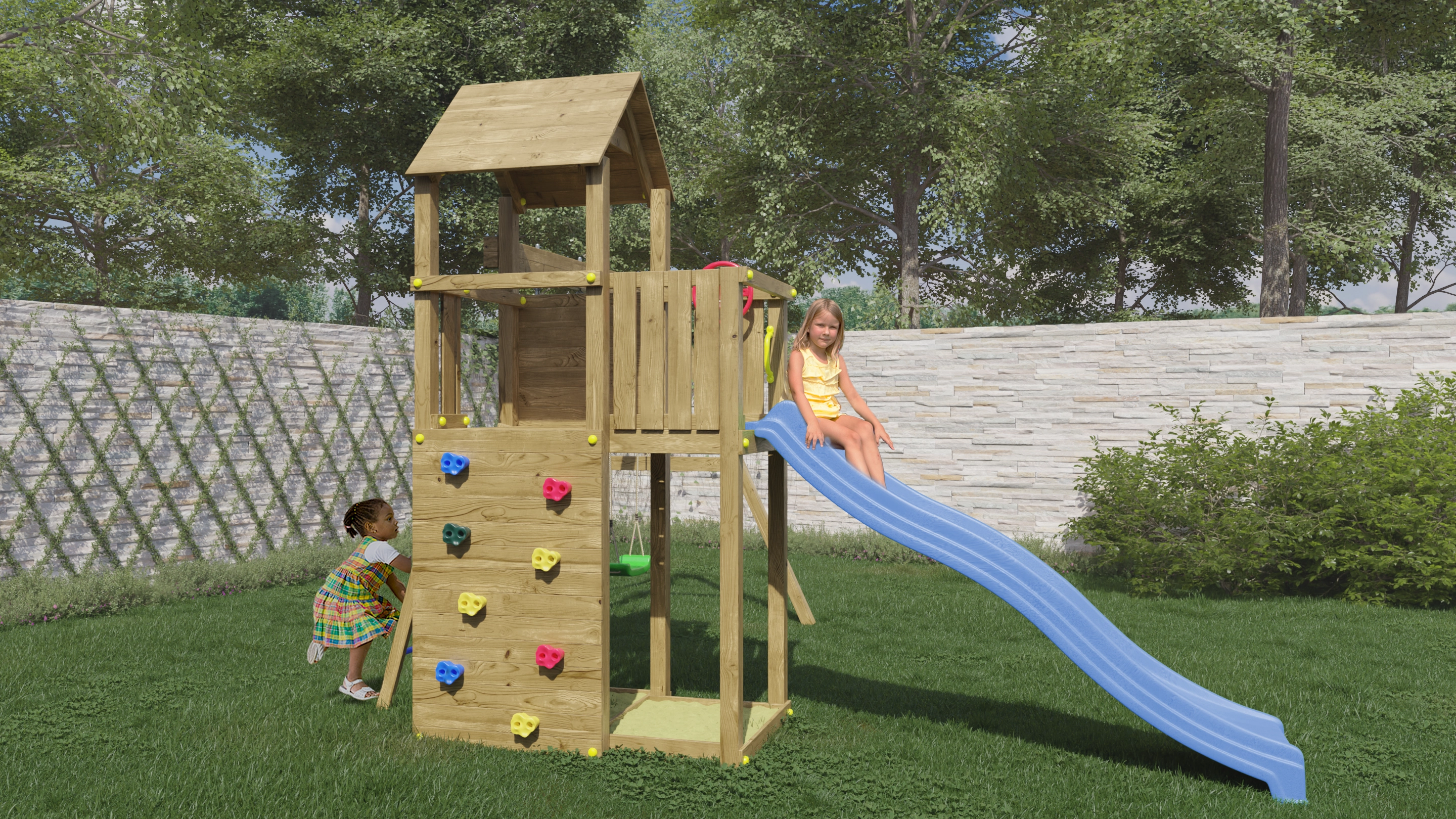 • inklusive Kletterwand mit 8 Klettergriffen