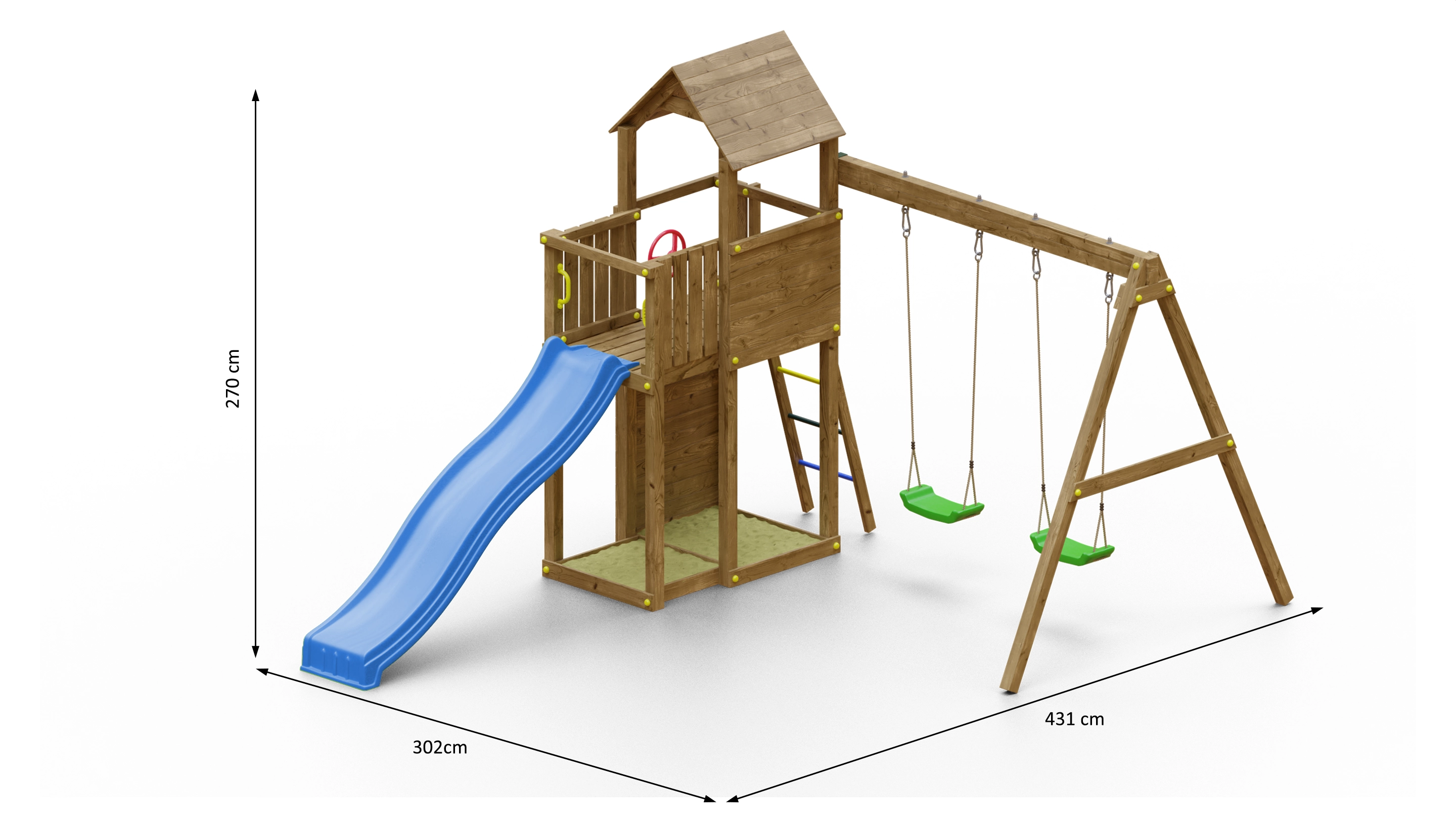 • Außenmaße: ca. 431 × 302 × 270 cm (Breite × Tiefe × Höhe)
