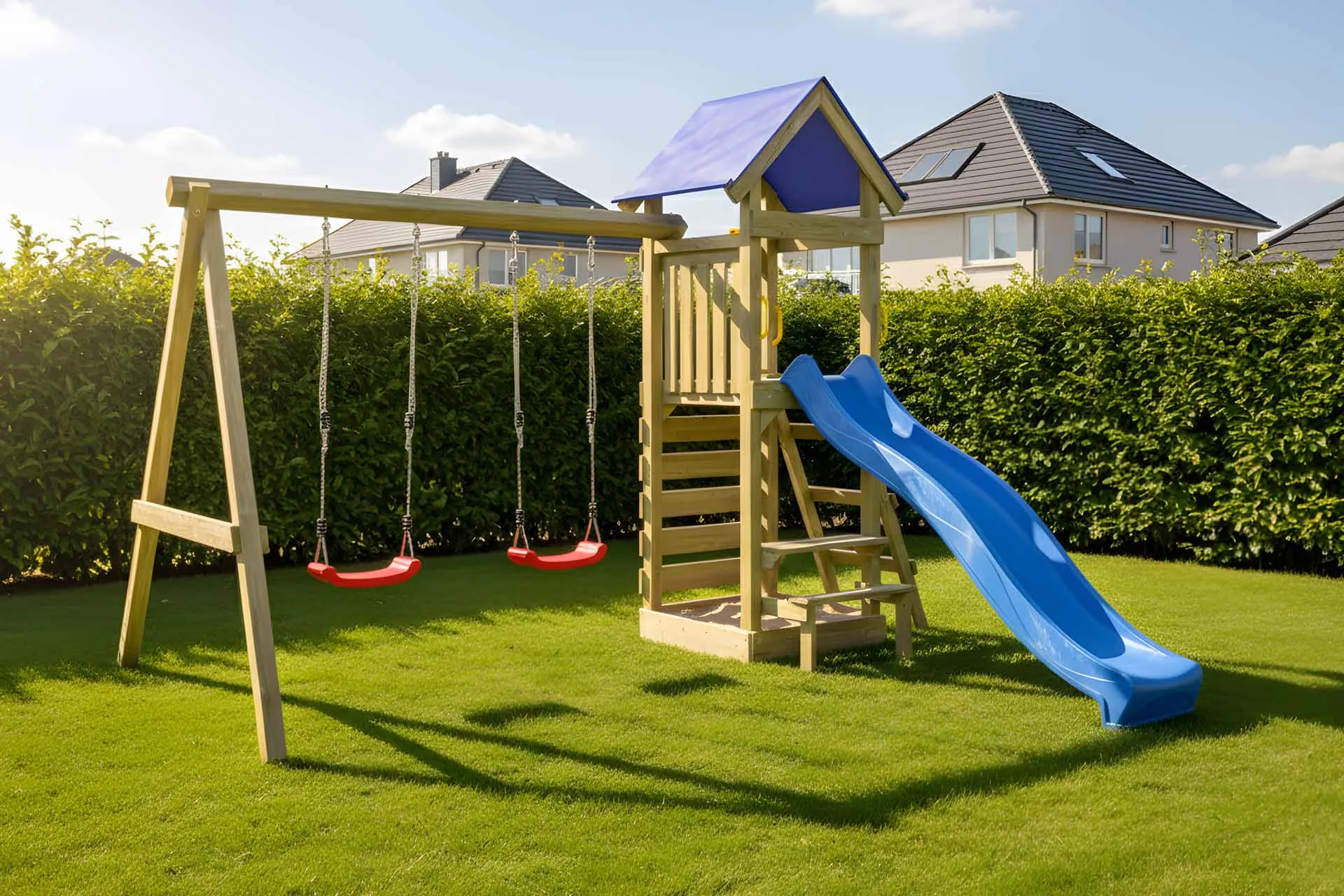 - inklusive Doppelschaukel mit zwei roten Schaukelbrettern