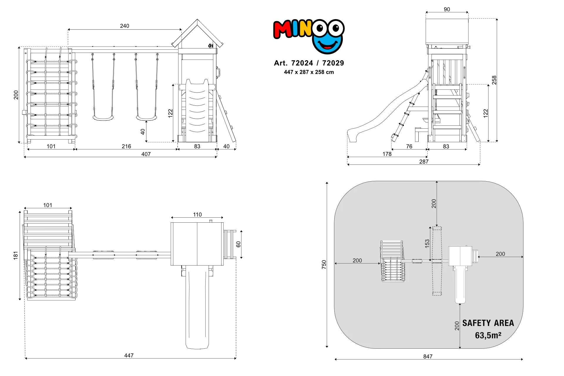 - ohne Fallschutzmatten – optional im Zubehör erhältlich