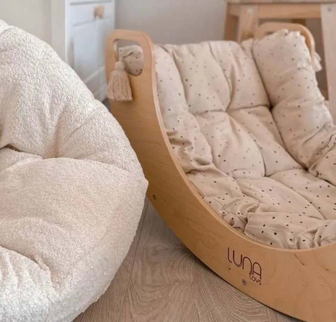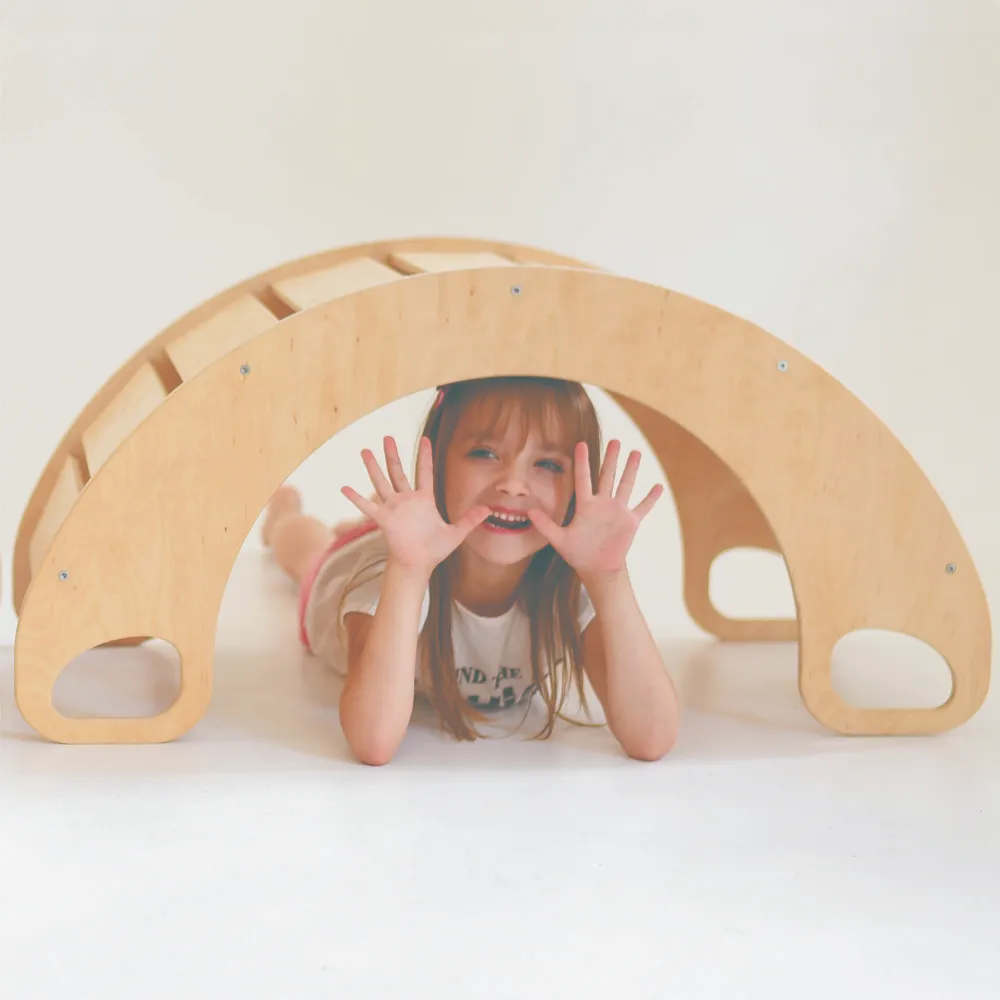 Die Regenbogen-Holzwippe aus hochwertigem Plywood bietet Kindern endlosen Spielspaß und unterstützt gleichzeitig die Entwicklung von Gleichgewicht, Koordination und Kreativität. Ob als klassische Wippe, Schaukelbrücke, Tunnel oder Fantasieelement – dieses vielseitige Spielgerät regt zu immer neuen Abenteuern an. Dank der robusten Konstruktion und der abgerundeten Kanten ist sie sowohl sicher als auch langlebig.